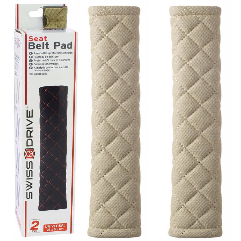 Μαξιλαράκια Ζώνης Ασφαλείας Swiss 26×6.3cm Μπεζ Με Μπεζ Ραφή Ζευγάρι 2 Τεμάχια