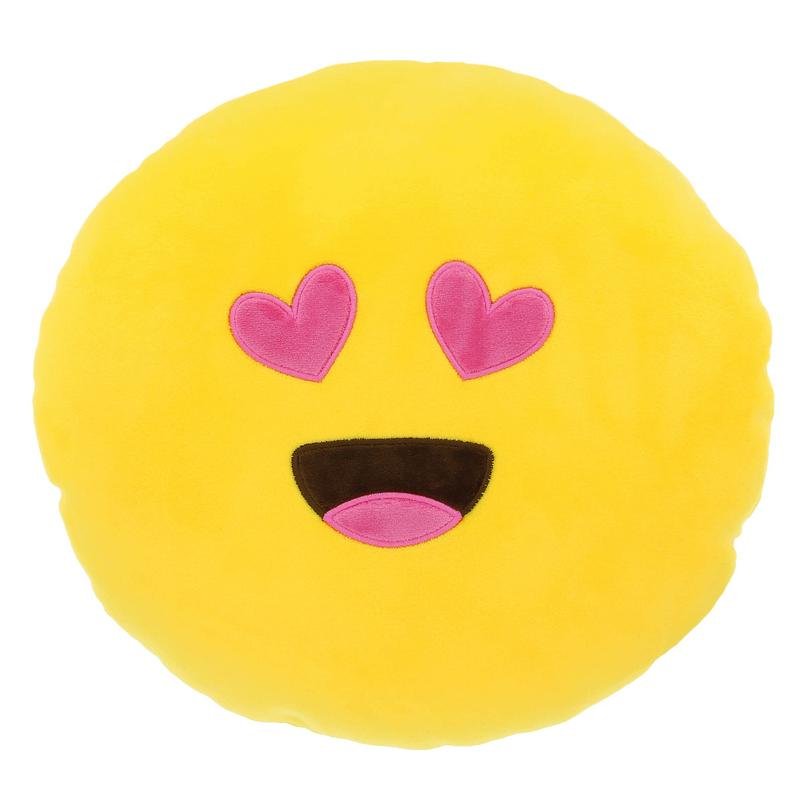 Μαξιλαράκι Αυτοκινητου Διακοσμητικό Στρογγυλό Ø28cm Happy Confort “Hearteyes Emoji” Κίτρινο 1 Τεμάχιο