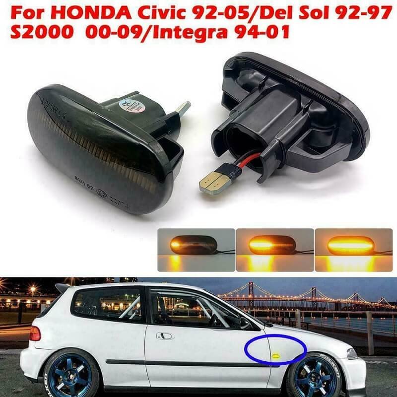 Πλαϊνά Φλας Φτερού Για Honda Civic 92-95 / CRX Del Sol 92-97 Led Dynamic Φιμέ 2 Τεμάχια