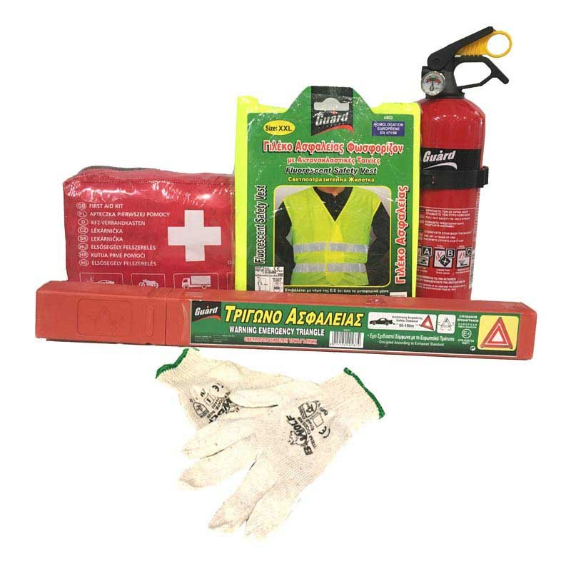 Σετ Ασφαλείας Αυτοκινήτου 5 Τεμάχια Σε Βαλιτσάκι Τρίγωνο, Γιλέκο, Φαρμακείο, Πυροσβεστήρας 1Kg Guard 01907